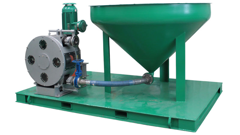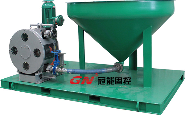 鉆屑輸送裝置由錐形鉆屑接收漏斗和鉆屑輸送泵以及控制裝置構(gòu)成,能夠接收固控設(shè)備用螺旋輸送機(jī)輸送過來的鉆屑和鉆井廢棄物。鉆屑輸送泵由電機(jī)驅(qū)動,通過真空作用吸取鉆屑,輸送給鉆屑干燥篩或者鉆屑甩干機(jī)處理。鉆屑輸送泵具備較強(qiáng)的自吸能力,專門用于輸送高粘度高固含量耐磨耐酸耐腐介質(zhì),且無密封結(jié)構(gòu)輸出壓力高。