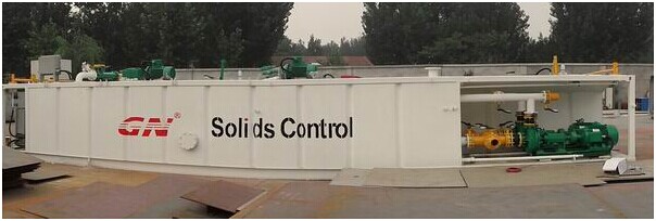 一個40英尺集裝箱大小的泥罐設(shè)計有足夠的空間進(jìn)行泥漿的回收及儲存,2臺50HP的 GNSB6x5-12型離心泵,其中一臺是用于輸送泥漿到去除泥器,而另一臺用于混漿