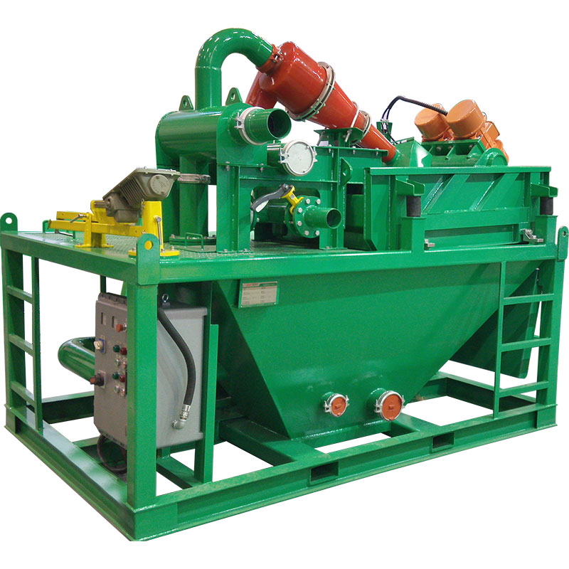 2. 一級分離設(shè)備:雙層振動篩。擁有上下兩層篩網(wǎng)的鉆井液振動篩:一層粗篩網(wǎng)可以將粗顆粒進(jìn)行分離,第二層細(xì)篩網(wǎng)可以將泥漿中更為細(xì)小的顆粒進(jìn)行篩除。剩下的泥漿進(jìn)入臥螺式沉降離心機(jī)進(jìn)行進(jìn)一步凈化分離。